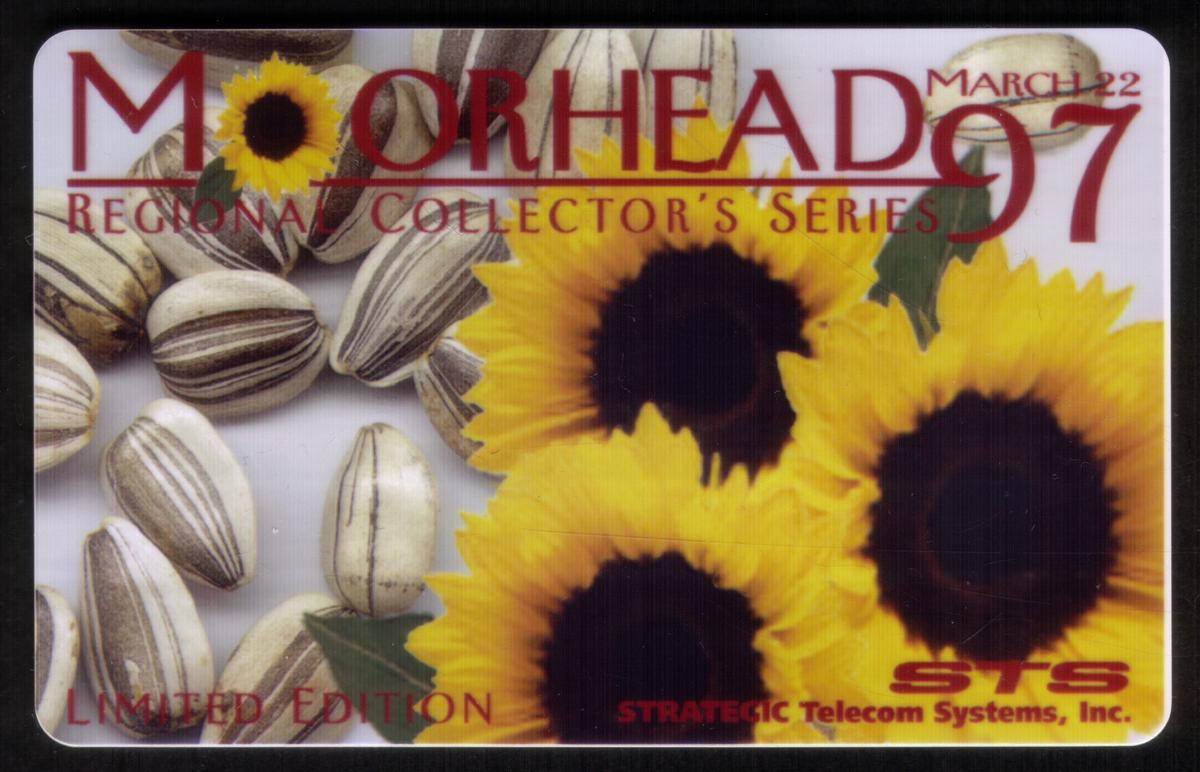 Overall, the card serves as a collectible piece showcasing sunflowers while highlighting the collaborative branding between Strategic Telecom Sys. and WorldCom. It is a distinct representation from the Moorhead, Minnesota regional series, valued by collectors interested in telecommunications history and nature-themed imagery.