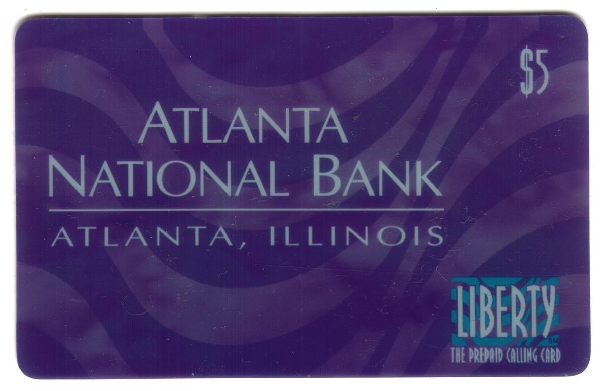 Vintage Atlanta Illinois $5 prepaid calling card featuring a purple background, Liberty branding, and a professional, nostalgic financial design. |