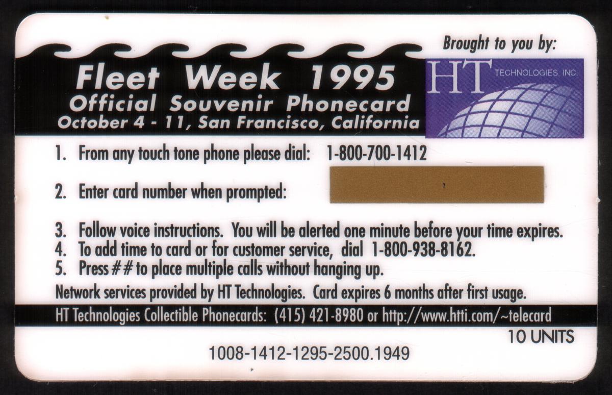 In the lower left corner, the logo of HT Technologies, Inc. is present, illustrated with a stylized globe and a purple background. The overall design merges the excitement of sailboat racing with brand partnerships and a telecommunications/internet theme, commemorating Fleet Week and the city of San Francisco in 1995.