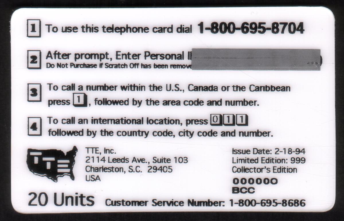 Since we have the world's largest inventory of USA phonecards for collectors, you will not necessarily receive the identical serial/batch/PIN number that we have scanned/pictured.
