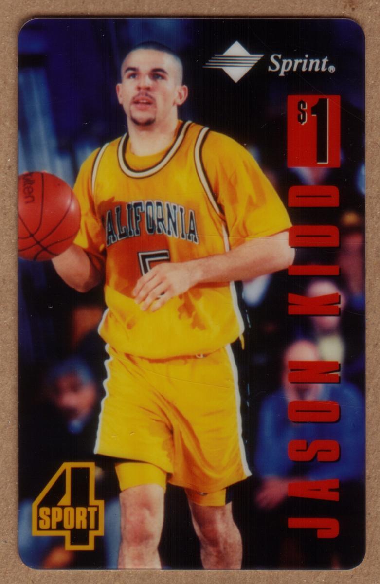 This card is associated with the National Basketball Association (NBA) and basketball-themed collectibles, showing Jason Kidd during his basketball career. It is produced by 4sport and The Score Board Inc. and has an asset value of one dollar.