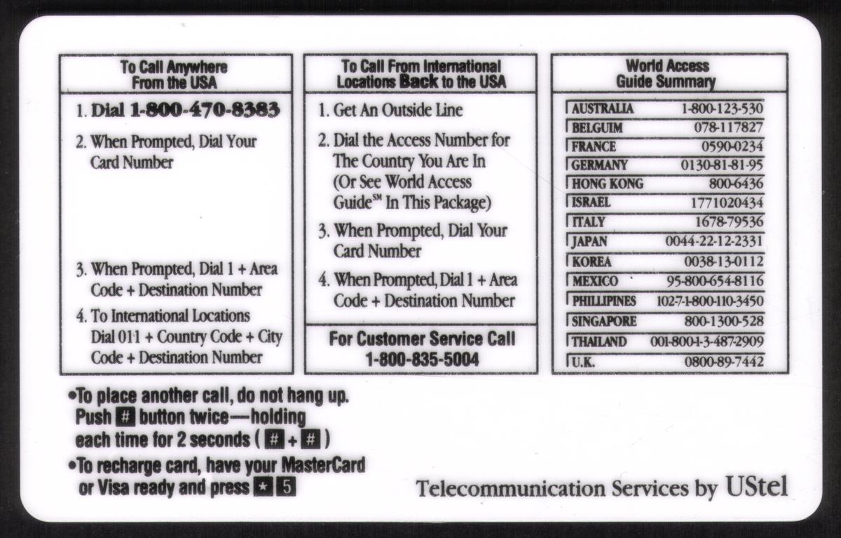Since we have the world's largest inventory of USA phonecards for collectors, you will not necessarily receive the identical serial/batch/PIN number that we have scanned/pictured.
