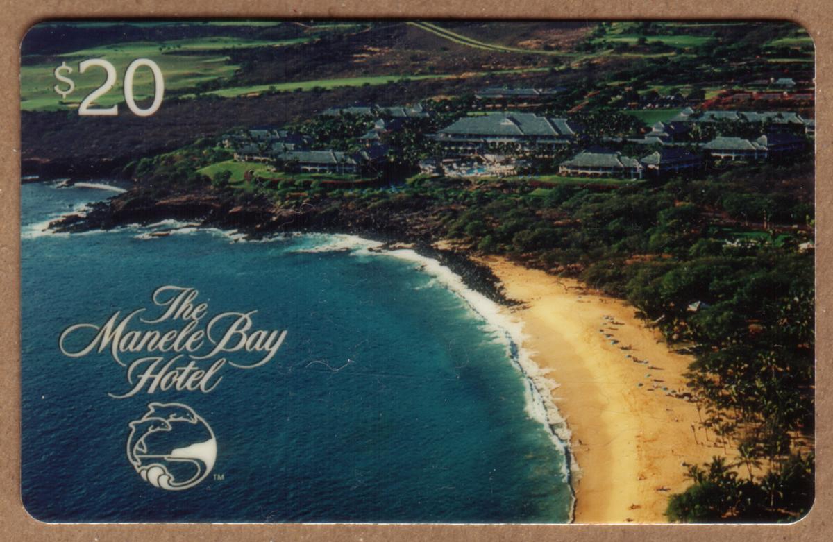 This phone card is a specimen issued by ASC Telecom, representing The Manele Bay Hotel in Lana'i, Hawaii. The card highlights the hotel’s coastal location and its connection to the Pacific Ocean. It is a collectible item suitable for travelers and collectors interested in Hawaii and resort-themed phone cards.