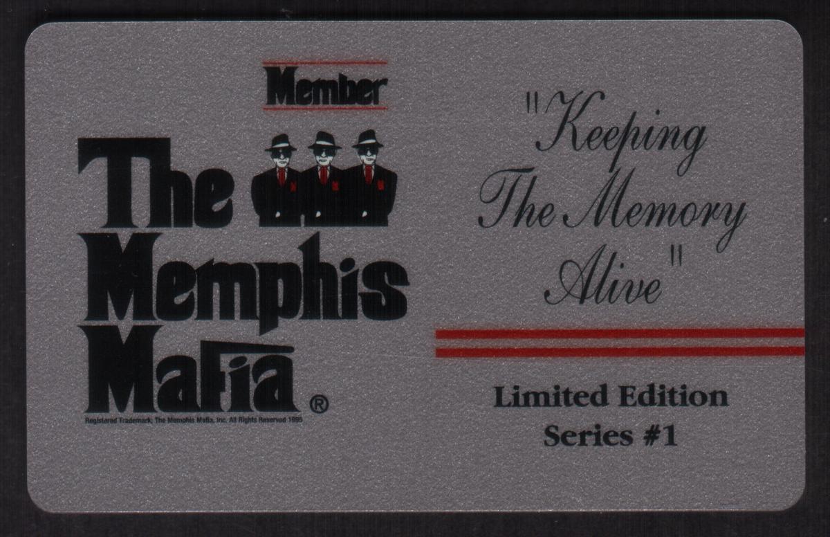 Overall, the card serves as a membership credential for fans dedicated to celebrating the life and impact of Elvis Presley, closely tied to the cultural iconography of the Memphis Mafia. It combines nostalgic imagery with precise branding, making it a notable collectible for enthusiasts of American music history, especially those focused on the King of Rock and Roll.
