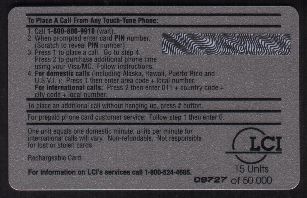 Since we have the world's largest inventory of USA phonecards for collectors, you will not necessarily receive the identical serial/batch/PIN number that we have scanned/pictured.