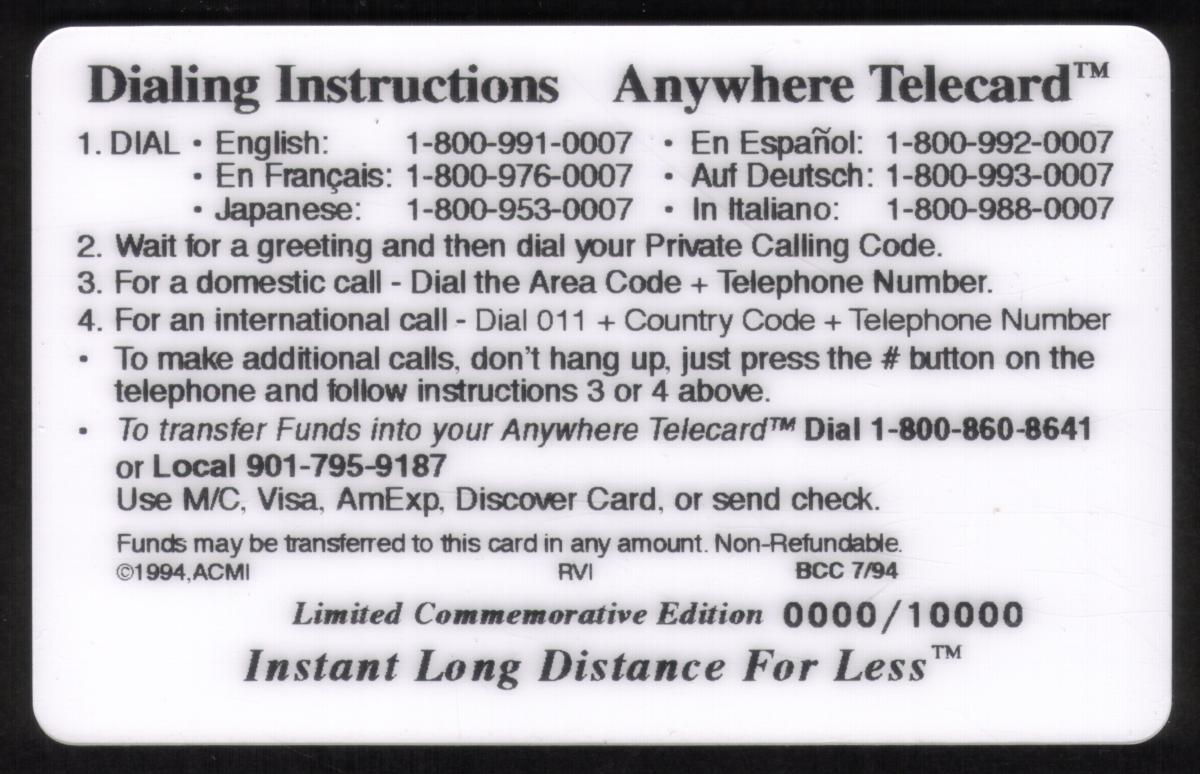 Since we have the world's largest inventory of USA phonecards for collectors, you will not necessarily receive the identical serial/batch/PIN number that we have scanned/pictured.
