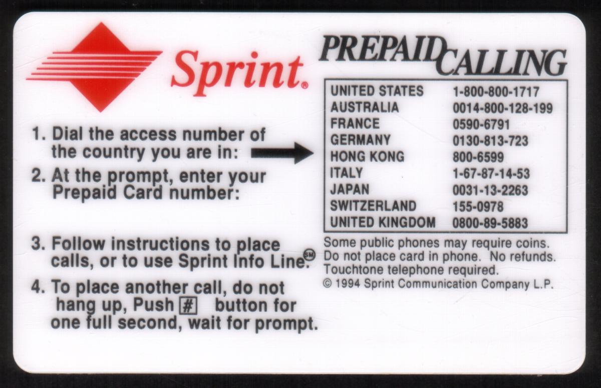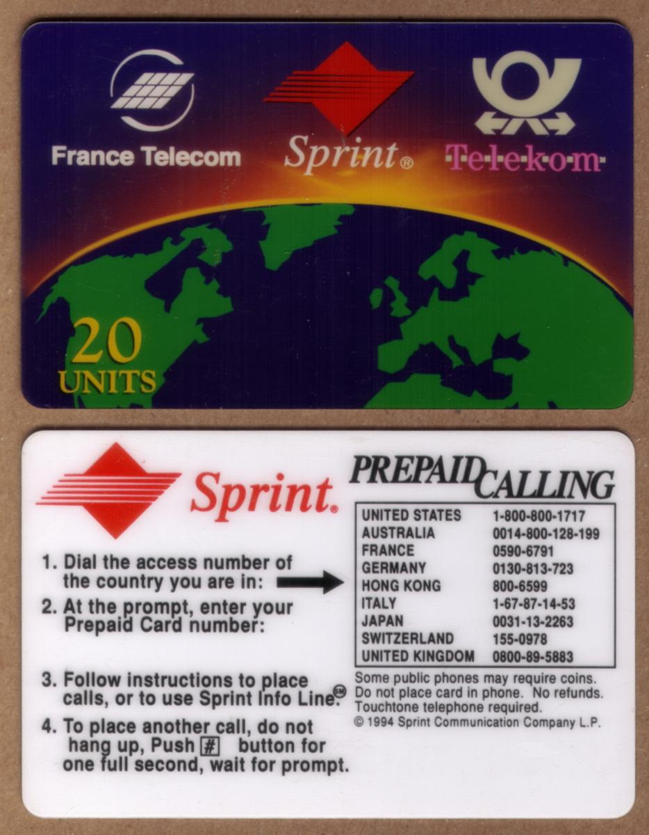 Keywords: Promotionals, telephone cards, France, French, German, deutche telekom, telecommunications, logos, trademarks, globes, world maps, earth, Sprint