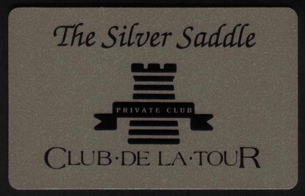 Further down, the card shows "CLUB · DE LA · TOUR" in a clear serif font, spaced evenly with centered dots between the words. The design and typography suggest exclusivity and sophistication, indicating membership or association with a private club named The Silver Saddle, Club De La Tour.