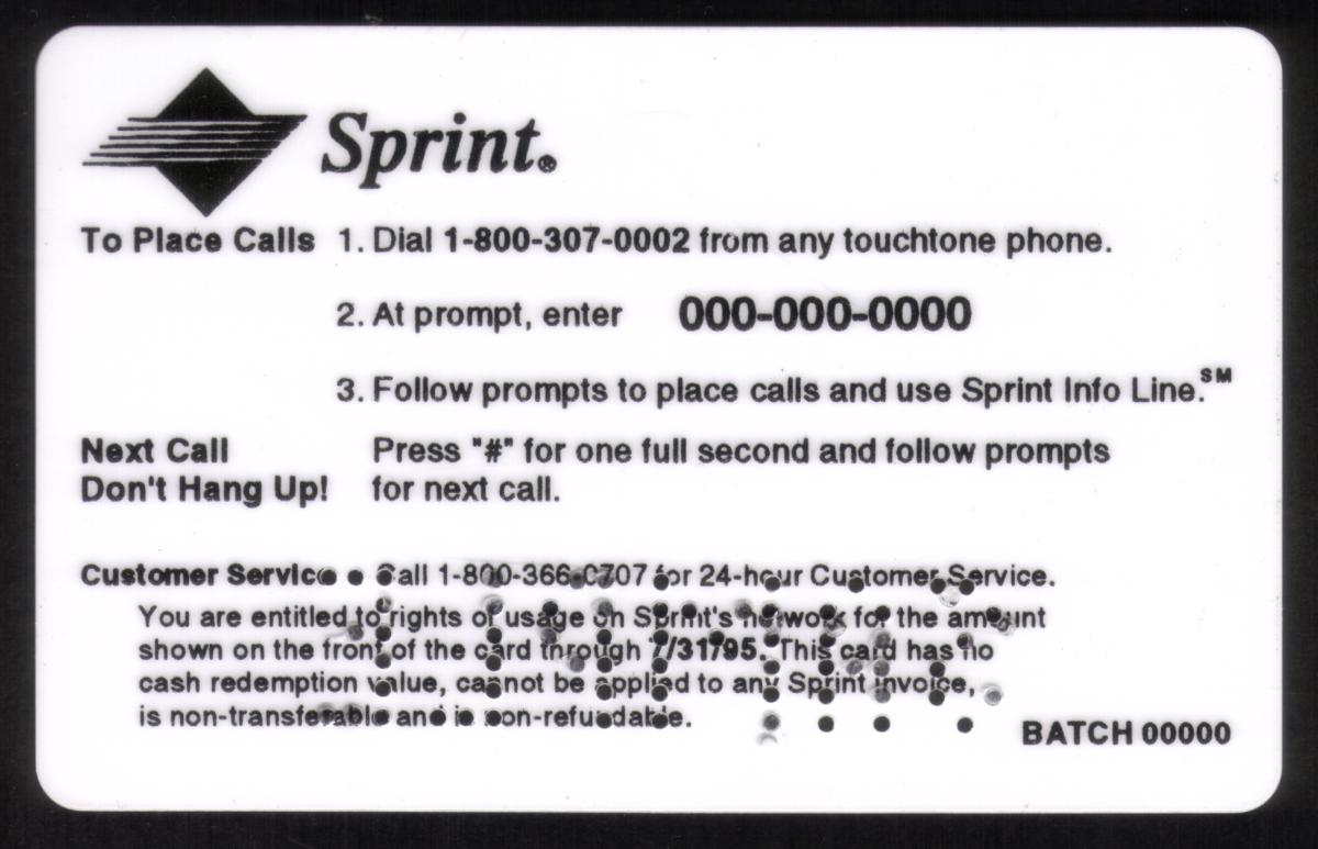 Since we have the world's largest inventory of USA phonecards for collectors, you will not necessarily receive the identical serial/batch/PIN number that we have scanned/pictured.