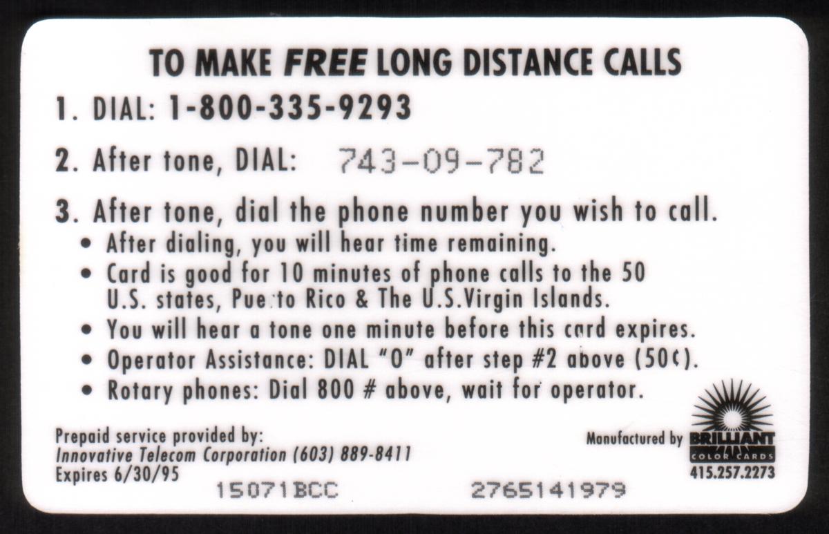 Since we have the world's largest inventory of USA phonecards for collectors, you will not necessarily receive the identical serial/batch/PIN number that we have scanned/pictured.