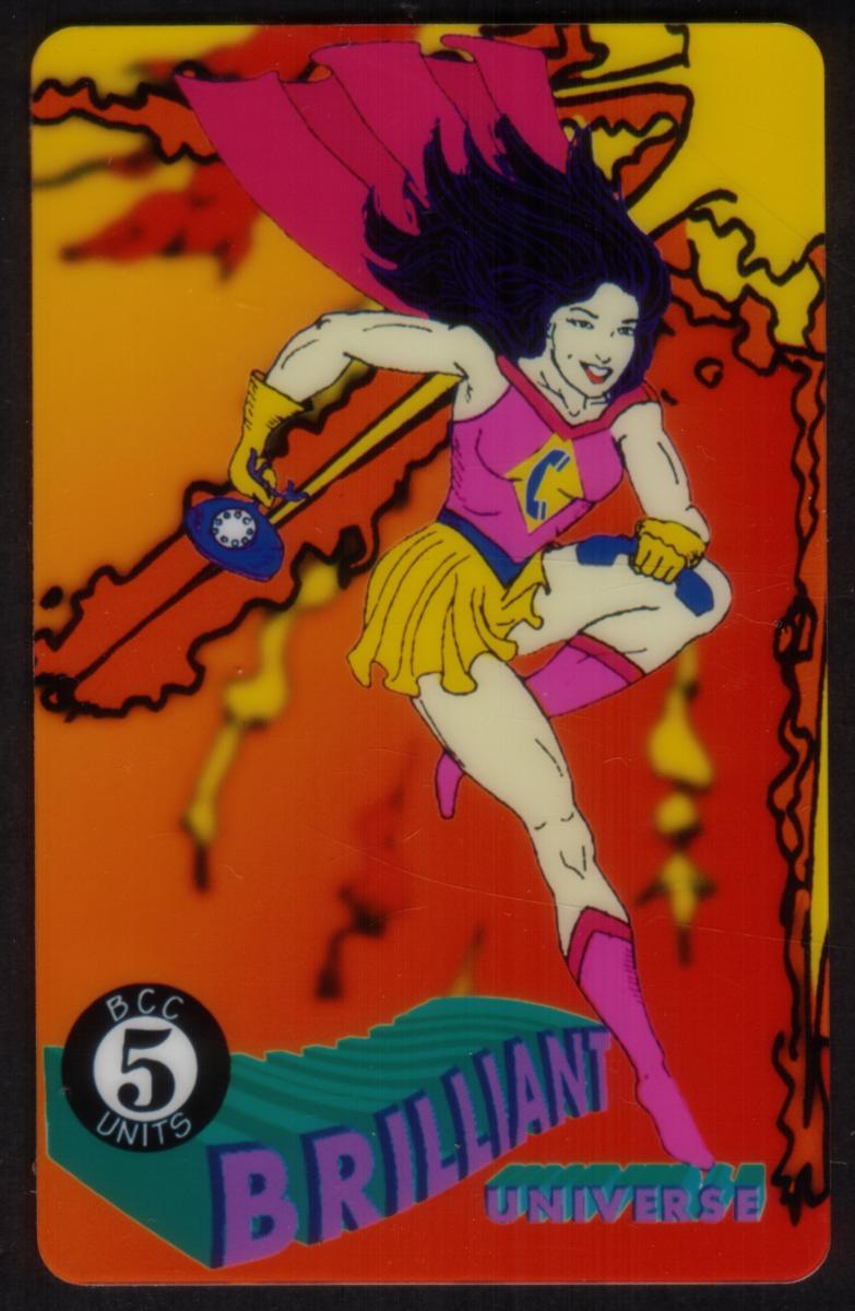 This is the Brilliant Universe Tele-Card Girl phone card from Phone Card Phair, dated March 1994, marked as USED. The card belongs to the Telecard Events and show cards from San Francisco, California. It represents art in the fantasy and superhero genres, related to the North American telephone phone card collection.
