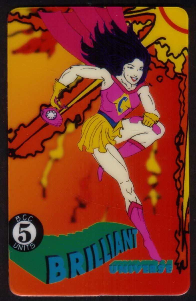 This phone card is part of a collectible series known for brilliant, colorful artwork and fantasy-themed graphics, with emphasis on telecommunication and superhero visuals. It is a proof edition, making it a unique item for collectors focused on vintage phone cards and telecard memorabilia from the early 1990s.