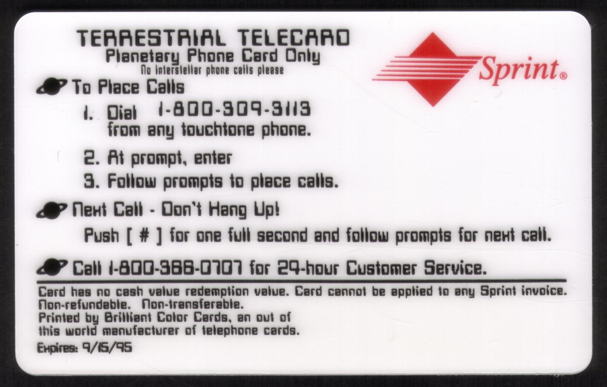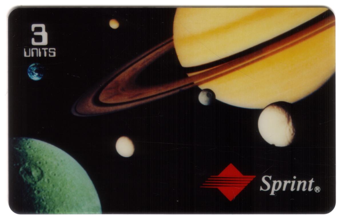 This phone card from the Telecard Events series emphasizes space and planets, specifically focusing on Saturn and its moons, making it a distinctive collector's item that highlights planetary imagery alongside the Sprint branding.