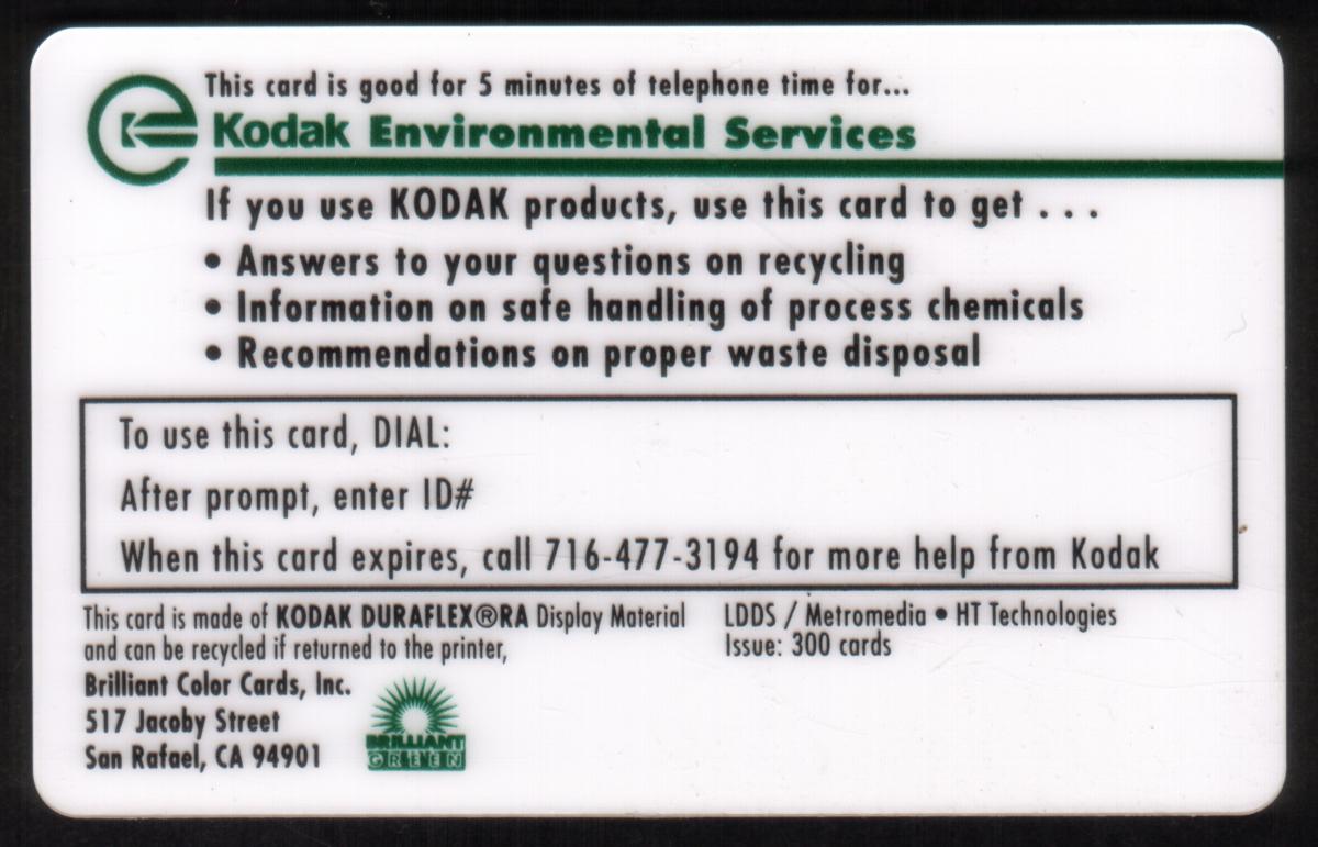 This card is part of a series of recyclable Kodak Duraflex cards, reflecting environmental themes, and it showcases the quality and clarity associated with Kodak’s imaging products. The imagery and branding combine to create a collectible item that emphasizes both artistry and environmental awareness.