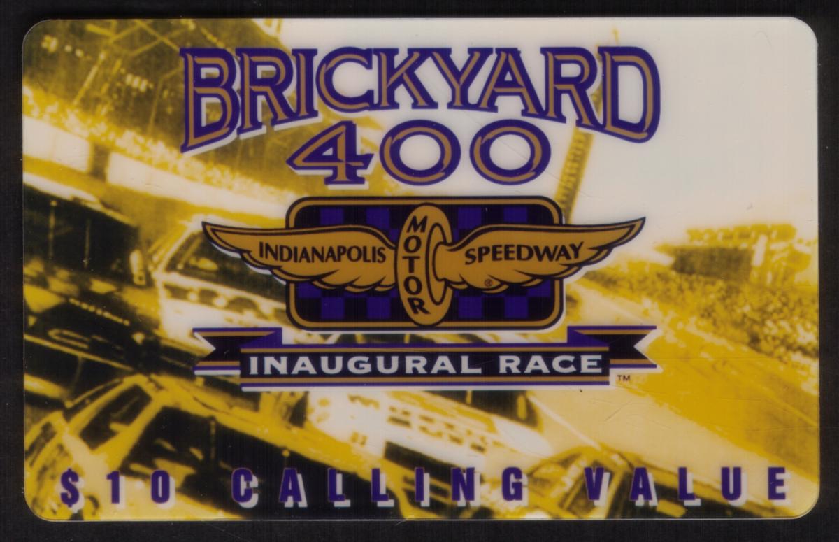 This phone card holds collectible value due to its association with the historic inaugural Brickyard 400 race, a key moment in auto racing history at the Indianapolis Motor Speedway. The card combines elements of motorsport imagery and official branding to reflect the excitement and significance of the event.