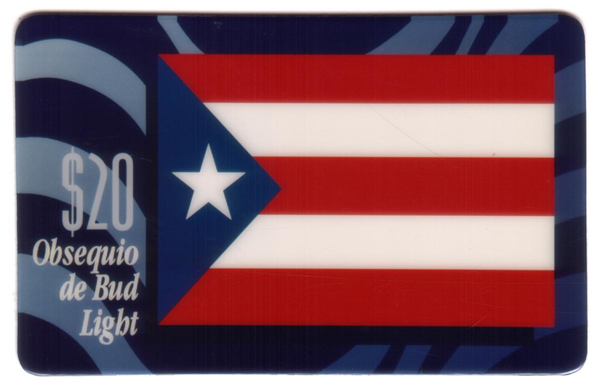 | $20. Obsequio de Bud Light: Bud Light Beer. Puerto Rico Flag SPECIMEN |