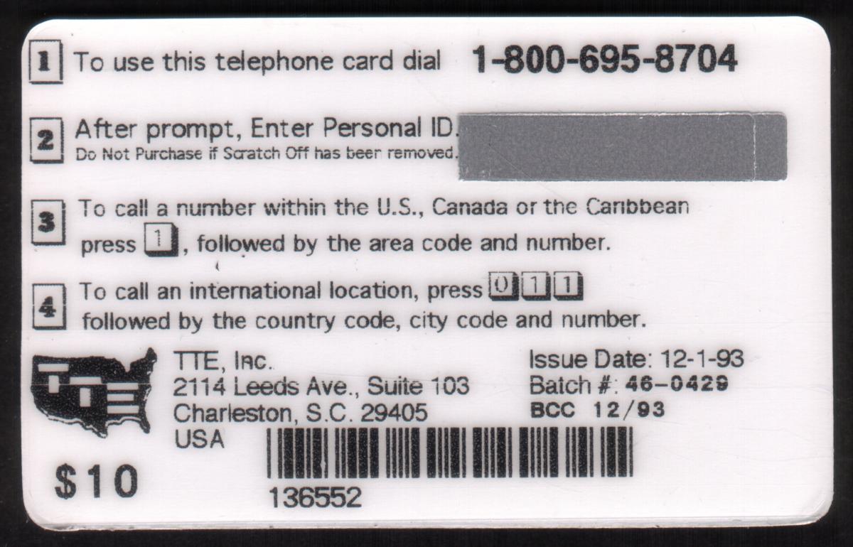 Since we have the world's largest inventory of USA phonecards for collectors, you will not necessarily receive the identical serial/batch/PIN number that we have scanned/pictured.