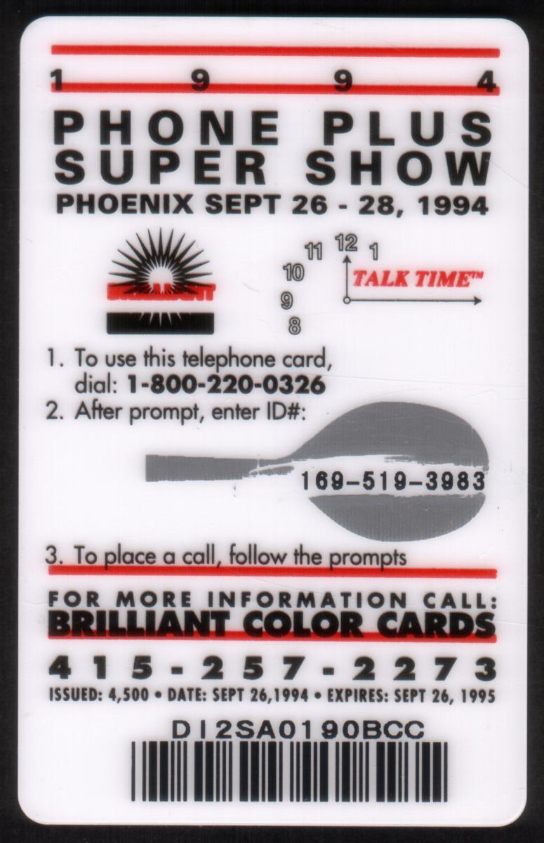 This phone card is associated with the 1994 Phone Plus Super Show in Phoenix, Arizona, highlighting the Women's Tennis Championships. The card’s artistic style emphasizes dynamic motion and strong contrasts, making it a collectible tribute to tennis and the Southwestern desert landscape.