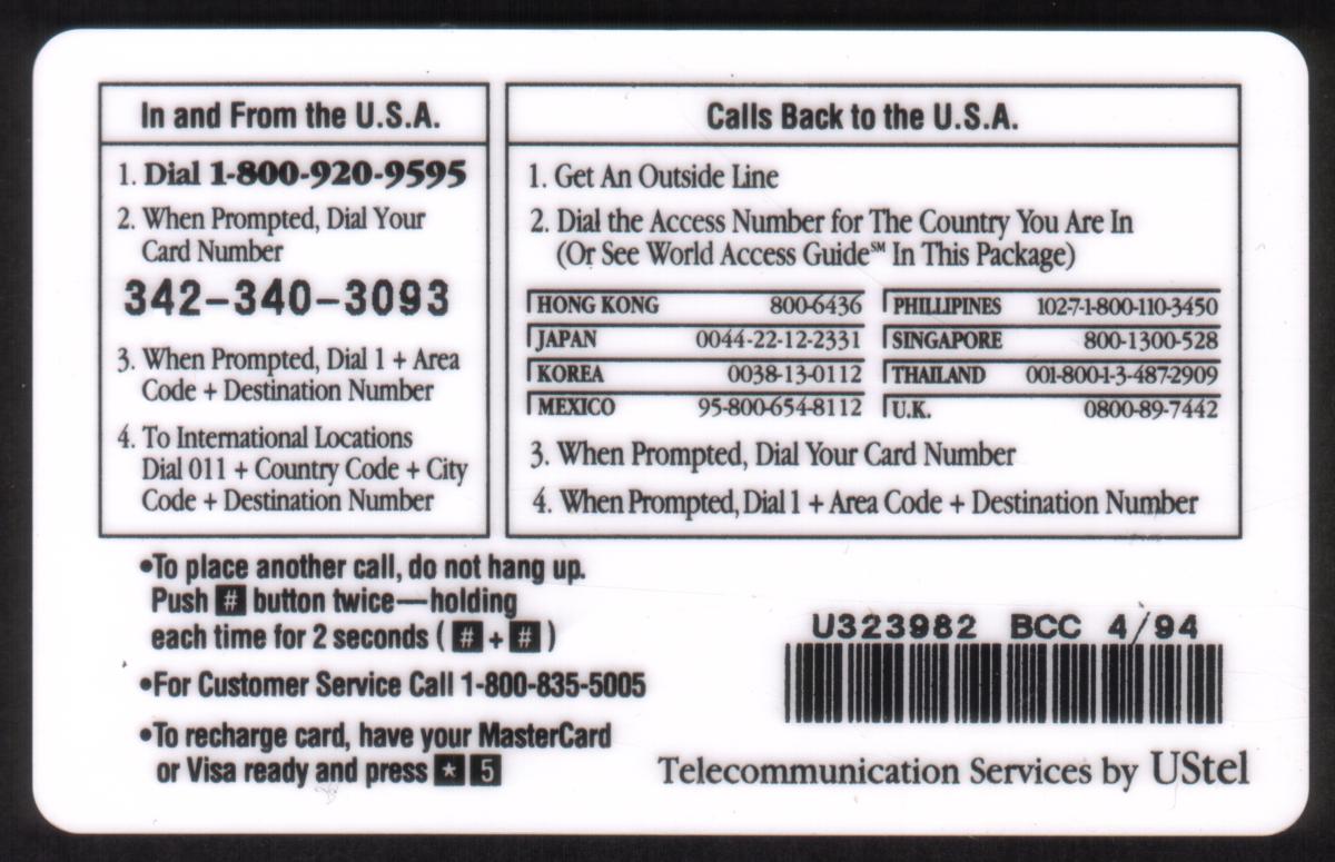 Since we have the world's largest inventory of USA phonecards for collectors, you will not necessarily receive the identical serial/batch/PIN number that we have scanned/pictured.