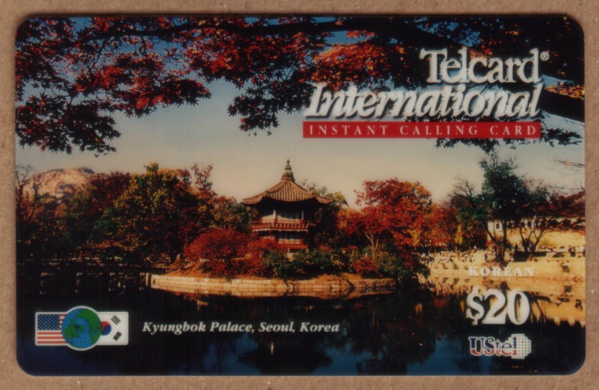Keywords: user card, us tel, ustel, telecard international instant calling card, american flag, korean flag, globe, travel, scenic. korean reverse, Globalcom 2000 USTel