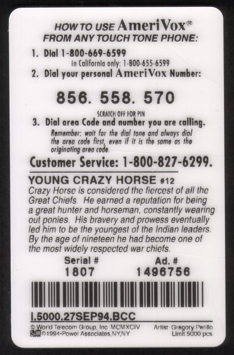Since we have the world's largest inventory of USA phonecards for collectors, you will not necessarily receive the identical serial/batch/PIN number that we have scanned/pictured.