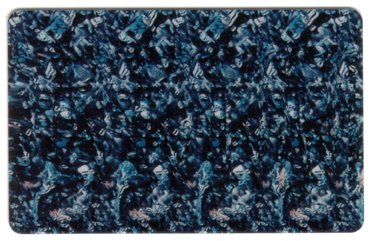 This collectible card features an artistic abstract design with a 3-D illusion effect from the Magic Eye Series, specifically depicting fish. The image uses a complex pattern of dark blue, black, and light blue shades to create an illusionary underwater scene filled with stylized fish and aquatic elements, characteristic of Magic Eye’s 3-D artwork style.
