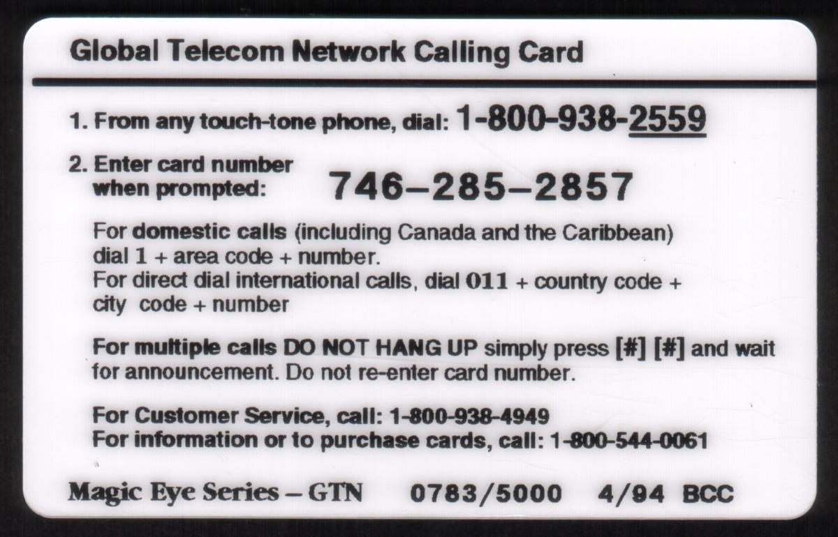 Since we have the world's largest inventory of USA phonecards for collectors, you will not necessarily receive the identical serial/batch/PIN number that we have scanned/pictured.