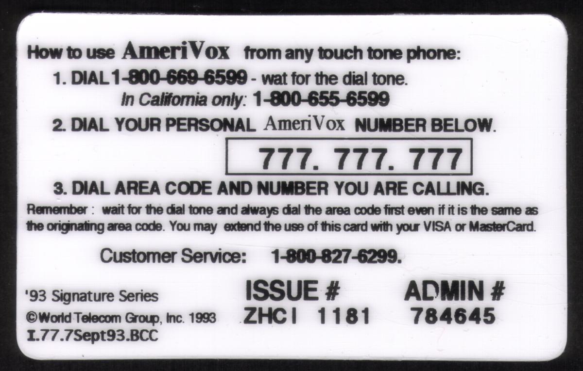 Since we have the world's largest inventory of USA phonecards for collectors, you will not necessarily receive the identical serial/batch/PIN number that we have scanned/pictured.