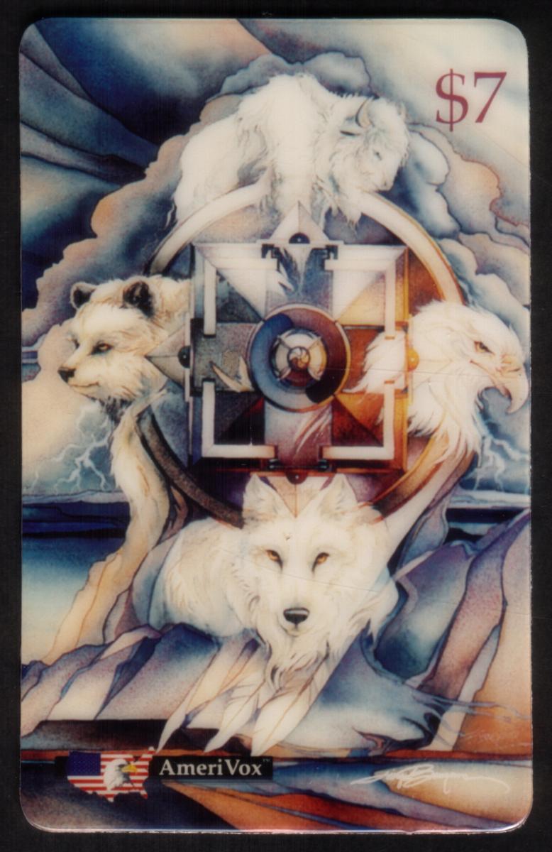 This card is a detailed artistic representation of the medicine wheel and its sacred animals and is part of a series reflecting these Native American spiritual themes. The precise composition and signature elements of Jody Bergsma's artwork make this collectible an important piece for those interested in cultural artistry and phone card collecting.