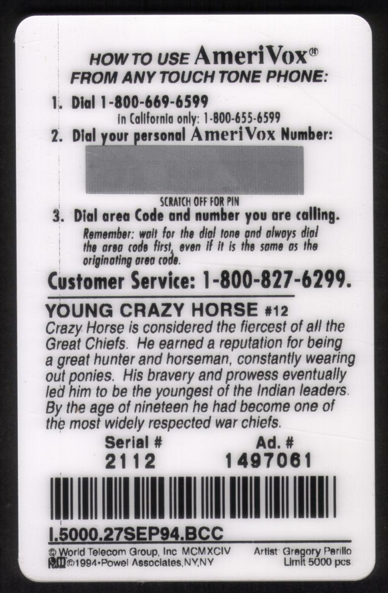 Since we have the world's largest inventory of USA phonecards for collectors, you will not necessarily receive the identical serial/batch/PIN number that we have scanned/pictured.