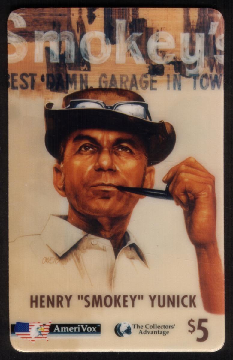 This card is a proof issued by AmeriVox, focused on the auto racing and automotive sports niche. It commemorates Henry "Smokey" Yunickâs legacy as a pioneering and respected figure tied to automobiles, smoking tobacco, and racing history.