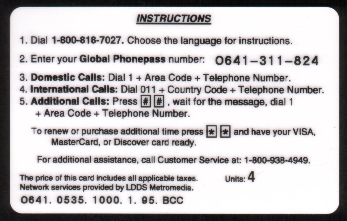 Since we have the world's largest inventory of USA phonecards for collectors, you will not necessarily receive the identical serial/batch/PIN number that we have scanned/pictured.