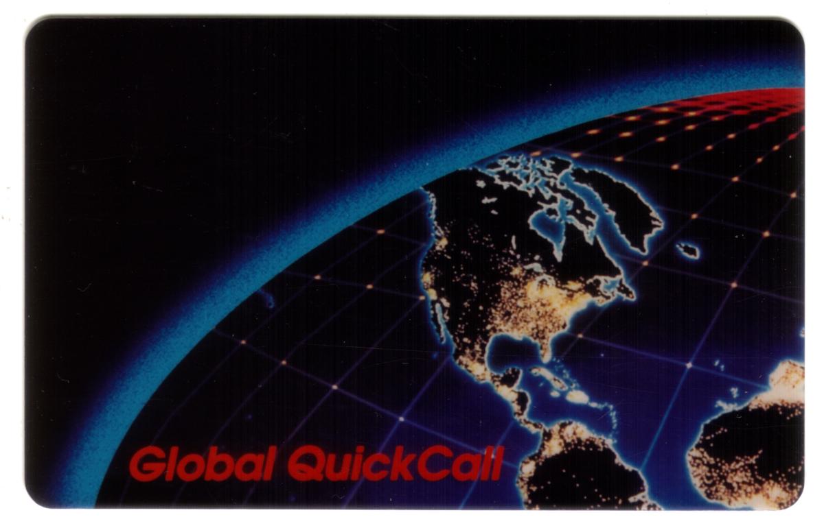 The card is labeled with the red text "Global QuickCall" positioned across the lower left section of the globe. The overall design uses deep black and blue tones to emphasize the space setting and the glowing earth, creating a striking visual contrast.