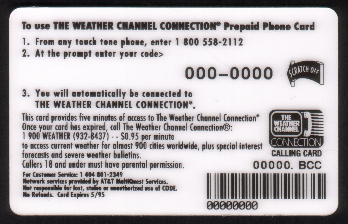 Near the bottom right, the card states "AT&T MultiQuest® Services," clearly identifying the service provider. The overall design integrates weather imagery with branded telecommunications logos, emphasizing the promotional nature tied to The Weather Channel and AT&T. The card is designated as an "ERROR SPECIMEN" and includes trademarks and branding consistent with AT&T and The Weather Channel.
