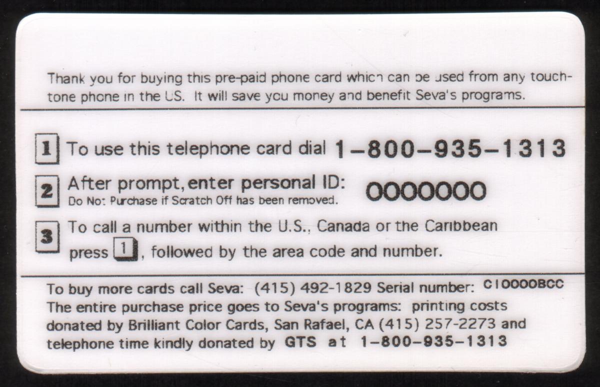 This phone card is connected to the Seva Foundation, an organization focused on building communities and relieving suffering, notably for indigenous peoples. The themes include support from doctors, professors, and social activists working in Guatemala and Mexico, particularly addressing issues like diabetes and child health among indigenous populations.