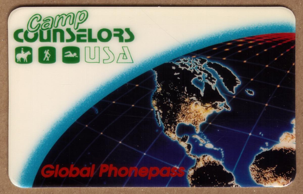 This card is associated with WorldCom and LDDS, as indicated subtly by the mention of "WorldCom" and "LDDS" in the keywords. It connects to themes of travel, volunteer adventures, and summer camp jobs across the USA, North, and Central America, fitting the "Camp Counselors USA" promotion shown on the card. It is a specimen card issued for promotional use relating to phone access and travel convenience.