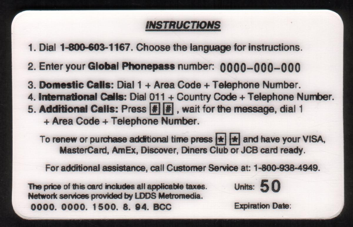 Since we have the world's largest inventory of USA phonecards for collectors, you will not necessarily receive the identical serial/batch/PIN number that we have scanned/pictured.
