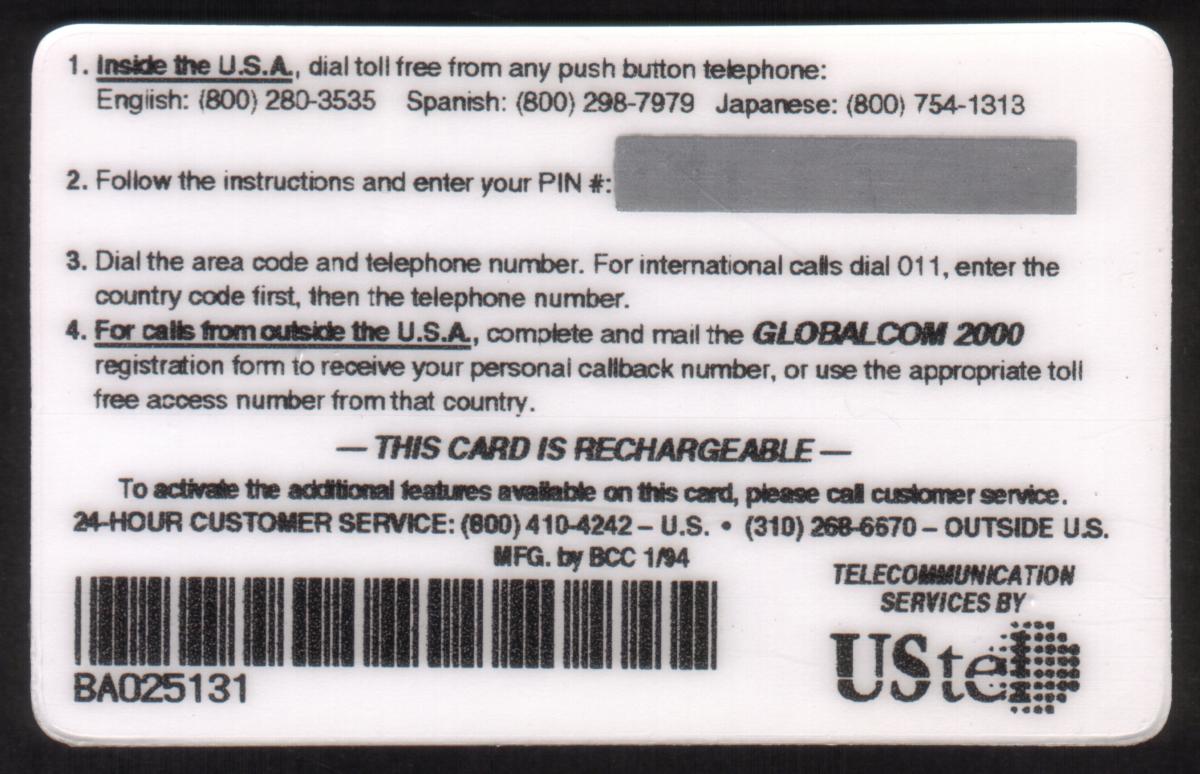 Since we have the world's largest inventory of USA phonecards for collectors, you will not necessarily receive the identical serial/batch/PIN number that we have scanned/pictured.