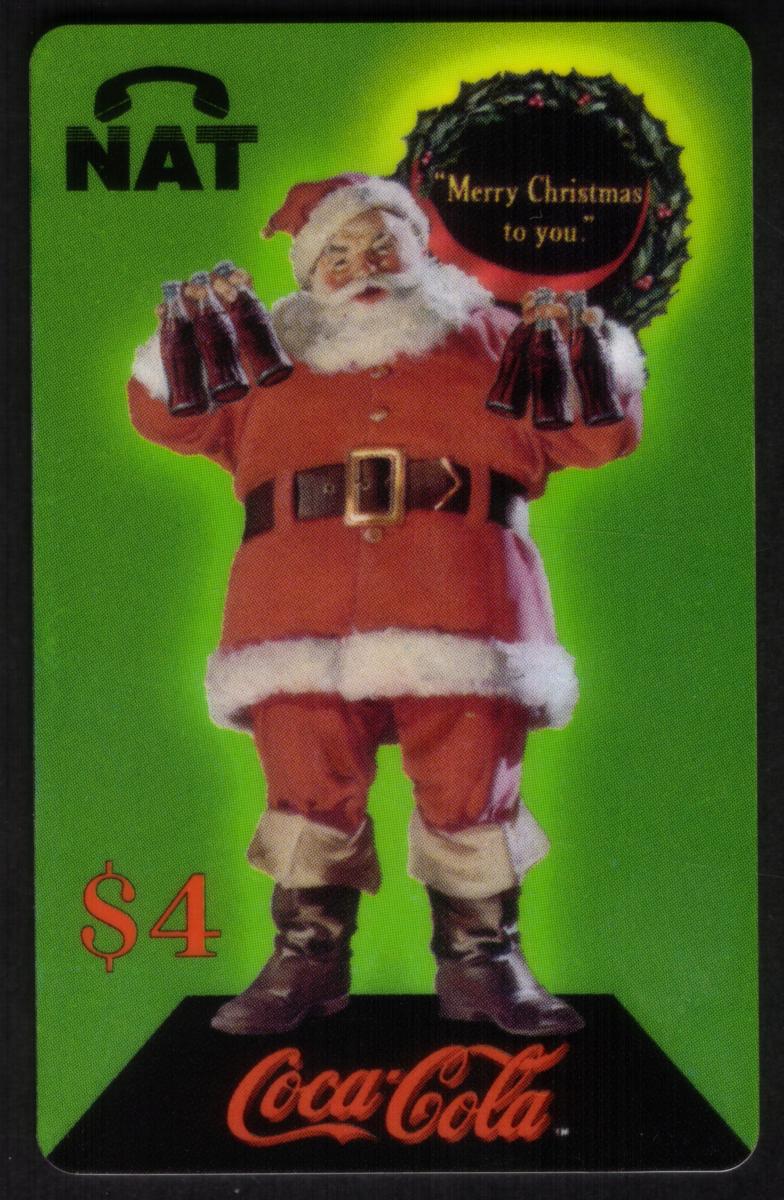 This phone card celebrates the Christmas holiday season by combining the iconic image of Santa Claus with the Coca-Cola brand, evoking nostalgia and festive cheer.