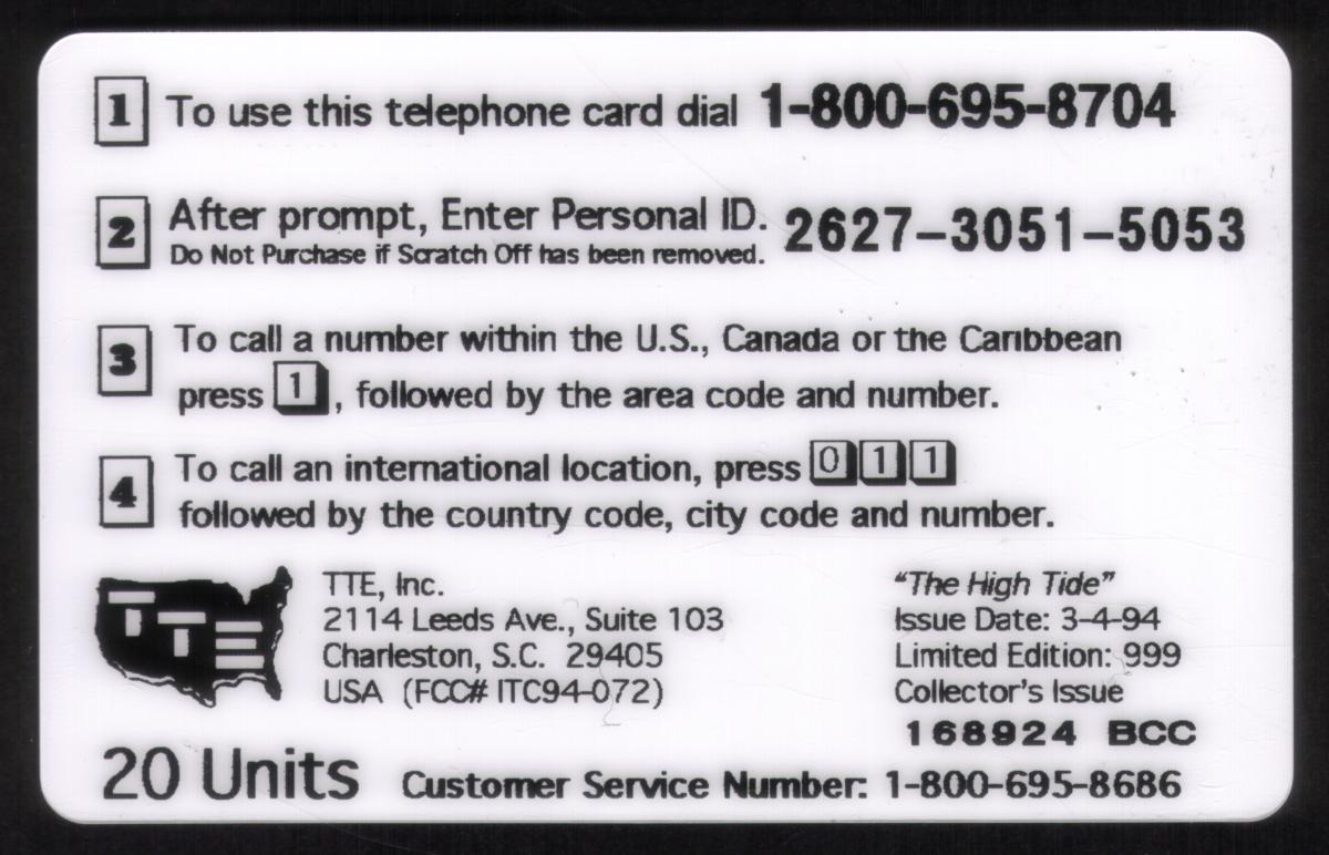 Since we have the world's largest inventory of USA phonecards for collectors, you will not necessarily receive the identical serial/batch/PIN number that we have scanned/pictured.