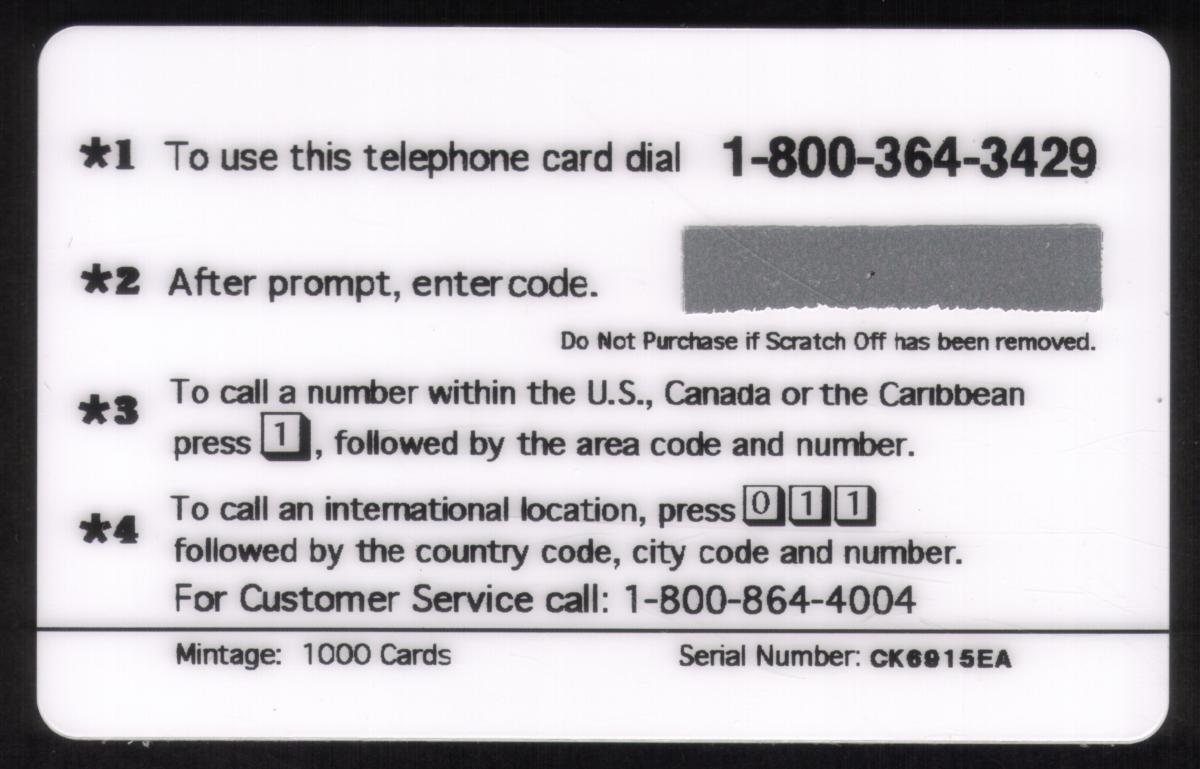Since we have the world's largest inventory of USA phonecards for collectors, you will not necessarily receive the identical serial/batch/PIN number that we have scanned/pictured.