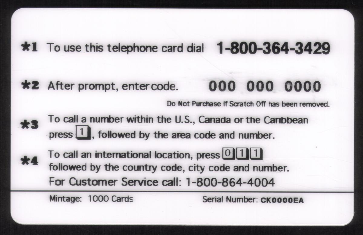 Since we have the world's largest inventory of USA phonecards for collectors, you will not necessarily receive the identical serial/batch/PIN number that we have scanned/pictured.