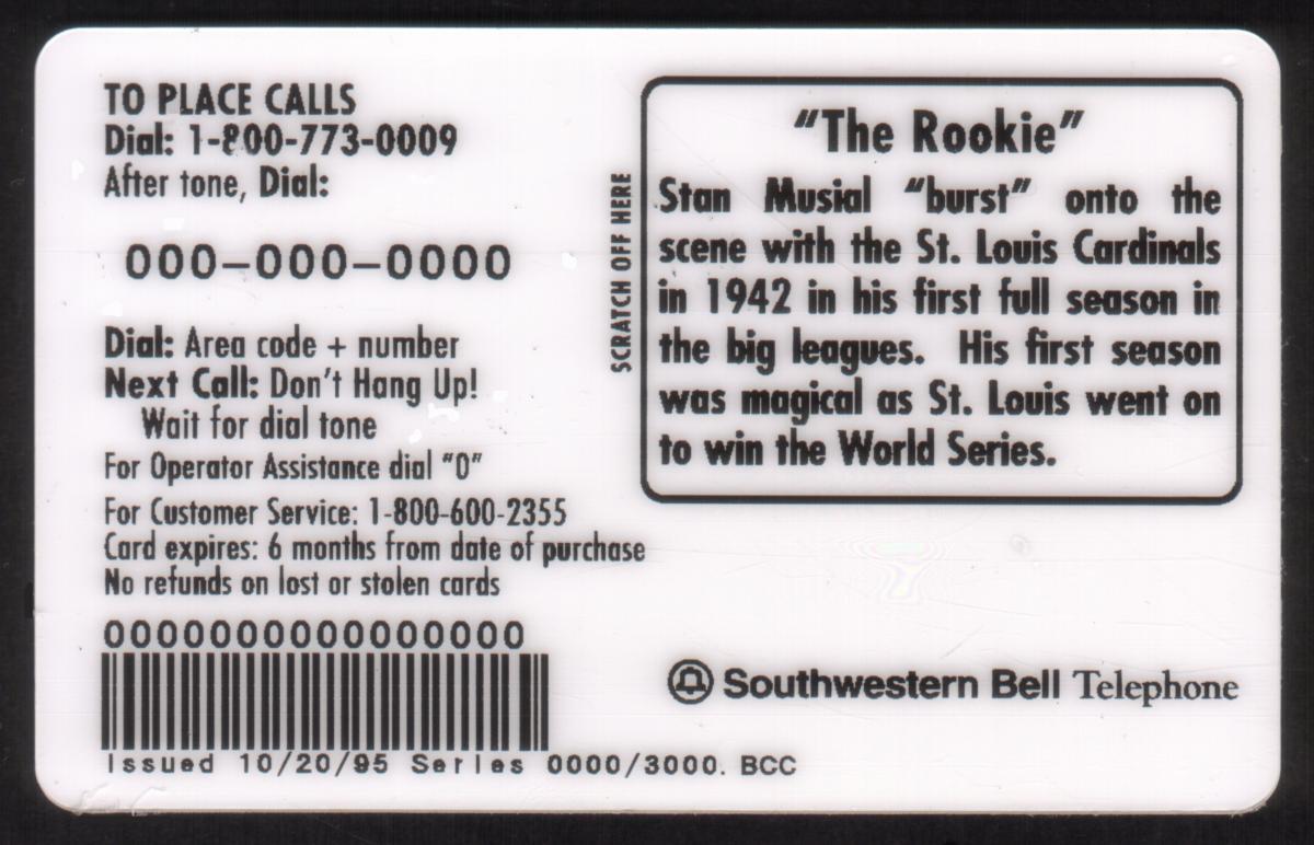 This card celebrates Stan Musial, one of baseball's legendary players, commemorating his early career with the St. Louis Cardinals. It is part of sports memorabilia related to baseball legends and is a collectible item highlighting baseball history.