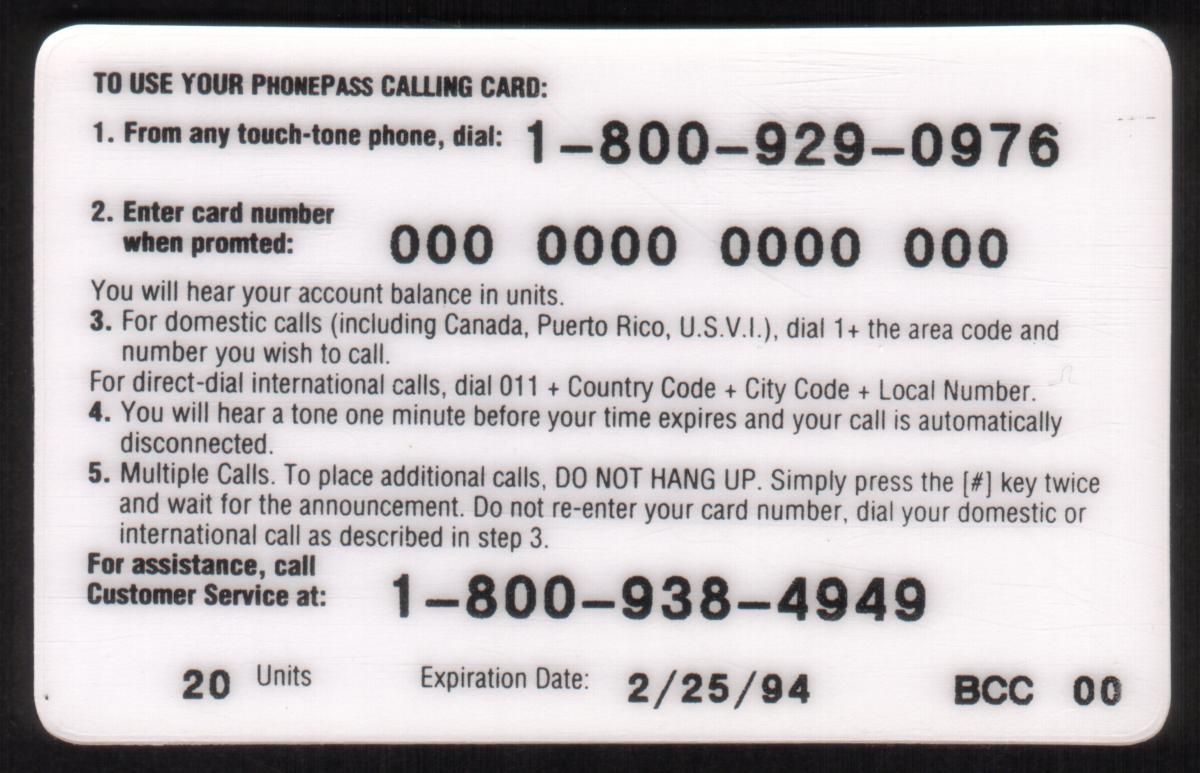 Since we have the world's largest inventory of USA phonecards for collectors, you will not necessarily receive the identical serial/batch/PIN number that we have scanned/pictured.