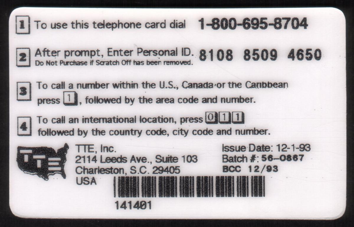 Since we have the world's largest inventory of USA phonecards for collectors, you will not necessarily receive the identical serial/batch/PIN number that we have scanned/pictured.