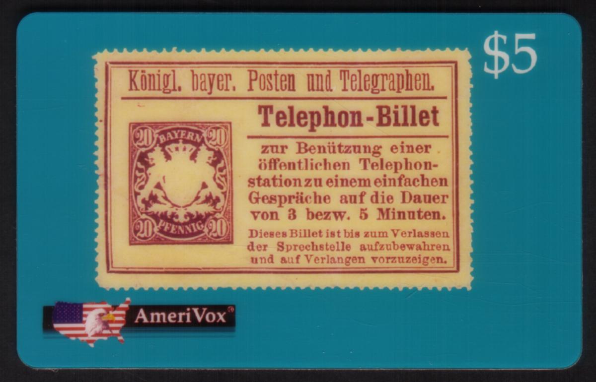 The overall presentation combines historical German philatelic design elements with modern collectible card styling. This item is a German postage and telephone stamp reproduction, categorized under collectibles and philatelic items, issued by AmeriVox.