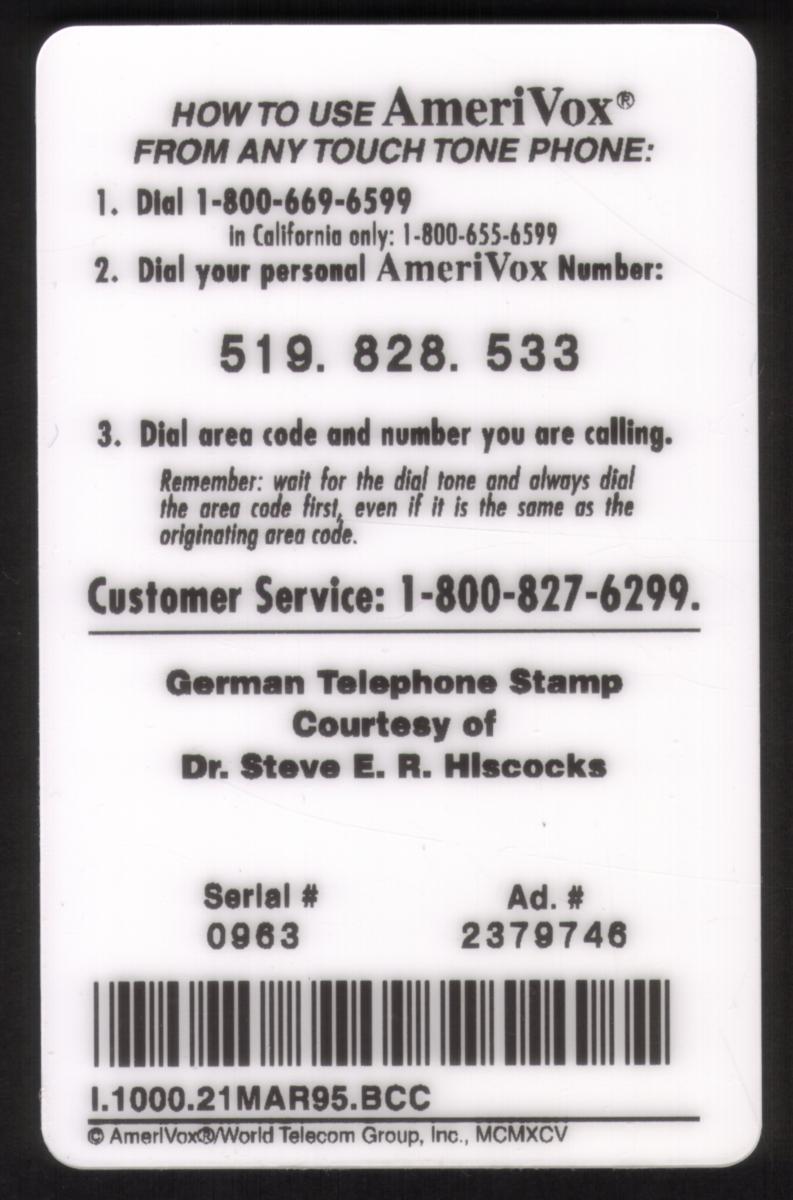 Since we have the world's largest inventory of USA phonecards for collectors, you will not necessarily receive the identical serial/batch/PIN number that we have scanned/pictured.