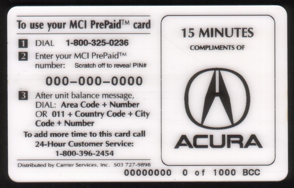This card is categorized as a promotional complimentary Transportation collectible related to autos and automotive services. It is associated with carrier services and MCI, indicating a connection to transportation or communication companies. The card’s presentation and phrasing identify it as a specimen example used for promotional purposes.