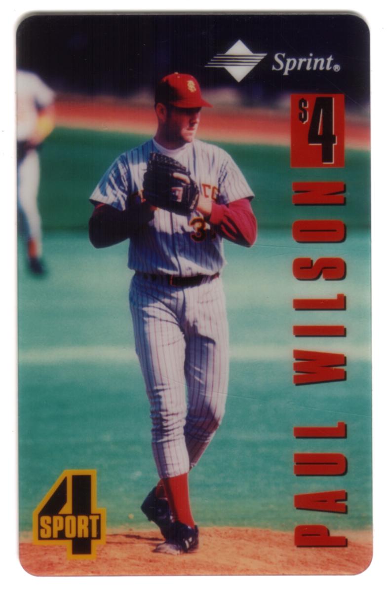 This collectible phone card is associated with the Sports series, specifically baseball, and features Paul Wilson, whose team affiliation includes the Seminoles as indicated by the keywords. The card comes from The Score Board Inc., emphasizing its connection to professional baseball memorabilia.