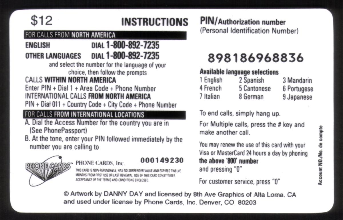 Since we have the world's largest inventory of USA phonecards for collectors, you will not necessarily receive the identical serial/batch/PIN number that we have scanned/pictured.